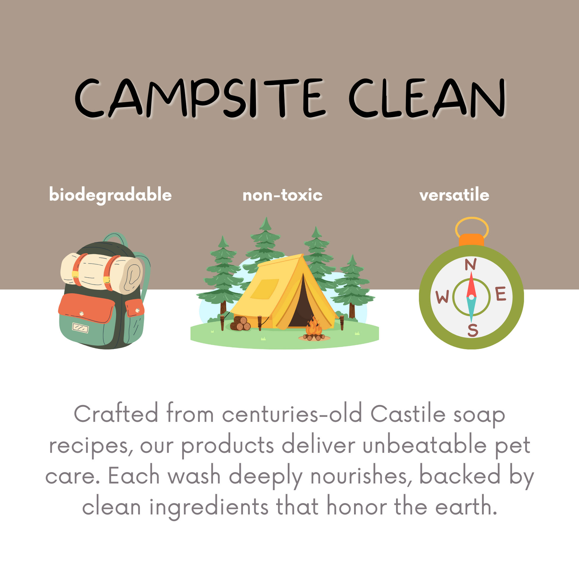 Embark on your next outdoor adventure with the confidence that Camp Dog Castile Soap will keep your furry friend clean, happy, and ready for whatever the trail throws their way. Whether you're camping, hiking, or just enjoying a day in the park, our soap ensures your dog can get dirty and live fully, without compromise.